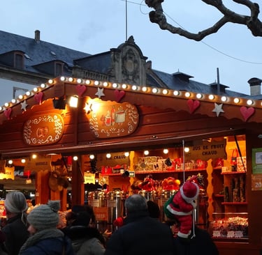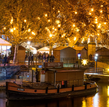 Stroll through the romantic, half-timbered houses of La Petite France. The markets here are smaller but exceptionally charming, with the reflections of the lights twinkling on the canals. Square Louise Weiss often hosts the Village de l'Avent (Advent Village), sometimes focusing on local producers and activities for children.